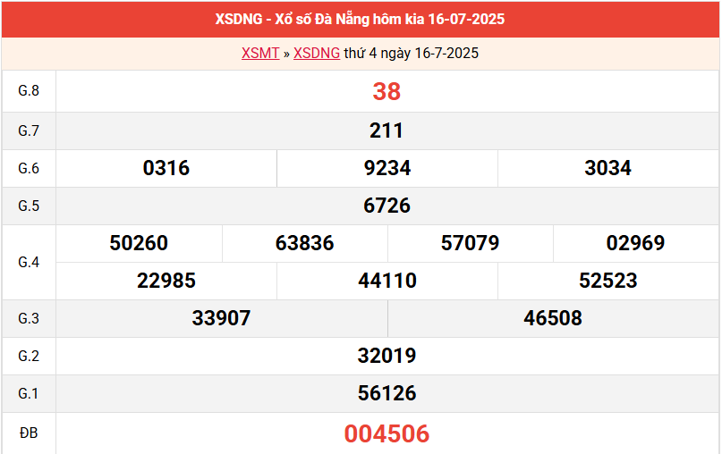 Bảng kết quả Đà Nẵng ngày 16/7/2025 tuần trước