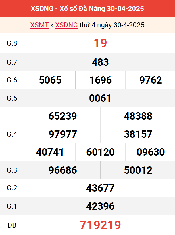 Bảng kết quả Đà Nẵng ngày 30/4/2025 tuần trước