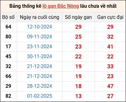 Bảng thống kê lô gan Đắc Nông lâu về nhất 10/5/2025