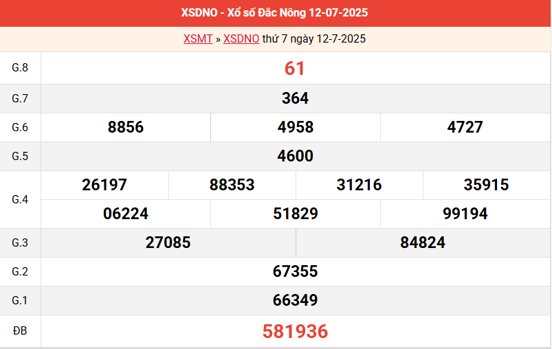 Bảng kết quả Đắk Nông ngày 12/7/2025 tuần trước