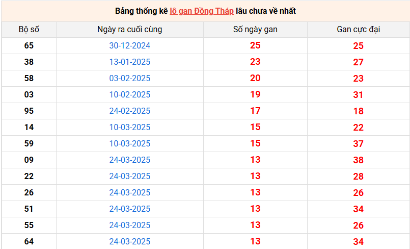 Bảng thống kê lô gan Đồng Tháp lâu về nhất 30/6/2025