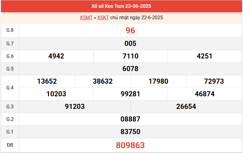 Bảng kết quả Kon Tum ngày 22/6/2025 tuần trước