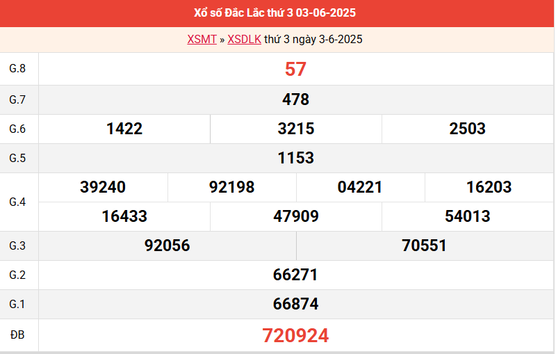 Kết quả xổ số Đắc Lắc ngày 3/6/2025