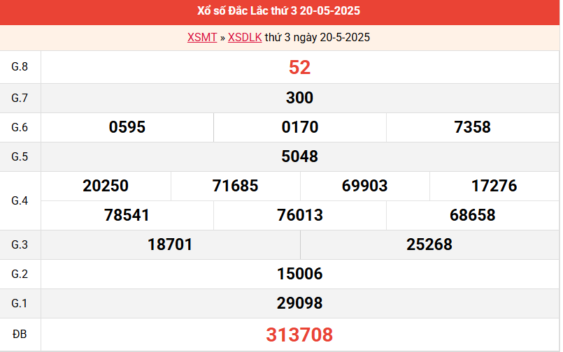 Kết quả xổ số Đắc Lắc ngày 20/5/2025
