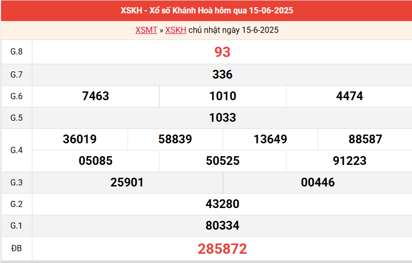 Kết quả xổ số Khánh Hòa ngày 15/6/2025