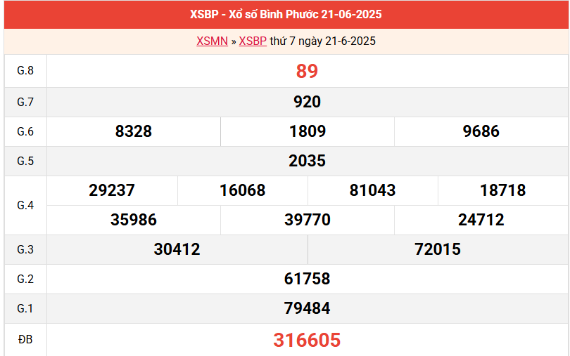 Bảng kết quả Bình Phước ngày 21/6/2025 tuần trước