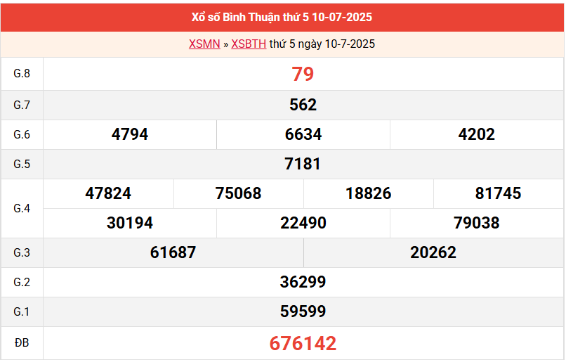 Bảng kết quả Bình Thuận ngày 10/7/2025 tuần trước