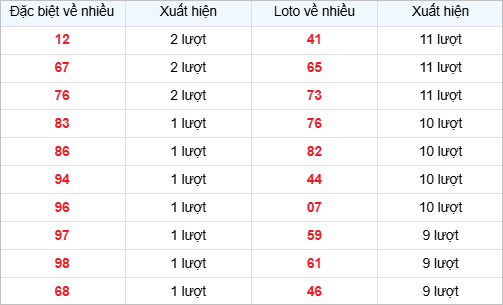 Bảng thống kê đuôi số về nhiều trong 30 ngày