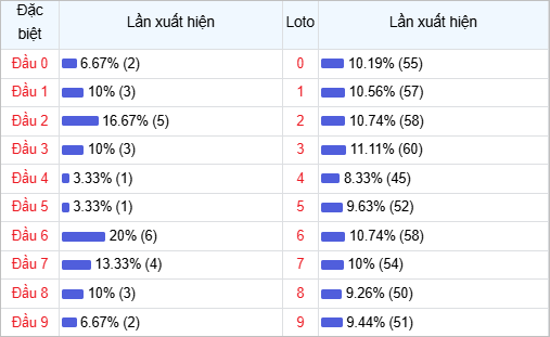 ⭐️ Thống kê tần suất đầu đuôi đặc biệt về trong 30 ngày trở lại
