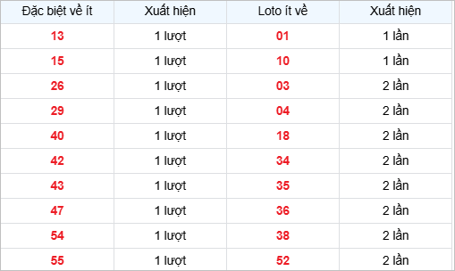 ⭐️ Thống kê số đặc biệt và lô tô về ít nhất tính đến hôm nay