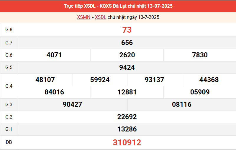 Bảng kết quả Đà Lạt ngày 13/7/2025 tuần trước
