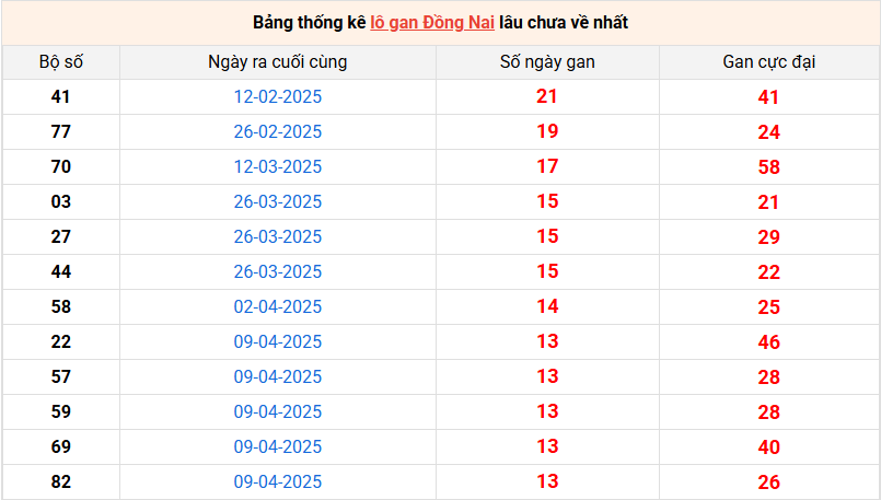 Bảng thống kê lô gan Đồng Nai lâu về nhất 16/7/2025