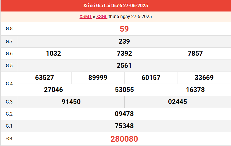 Bảng kết quả Gia Lai ngày 27/6/2025 tuần trước