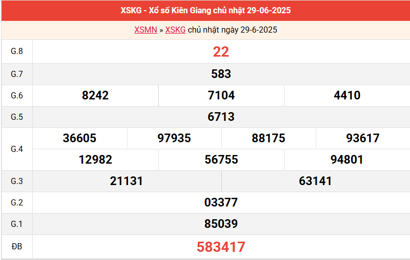Bảng kết quả Kiên Giang ngày 29/6/2025 tuần trước