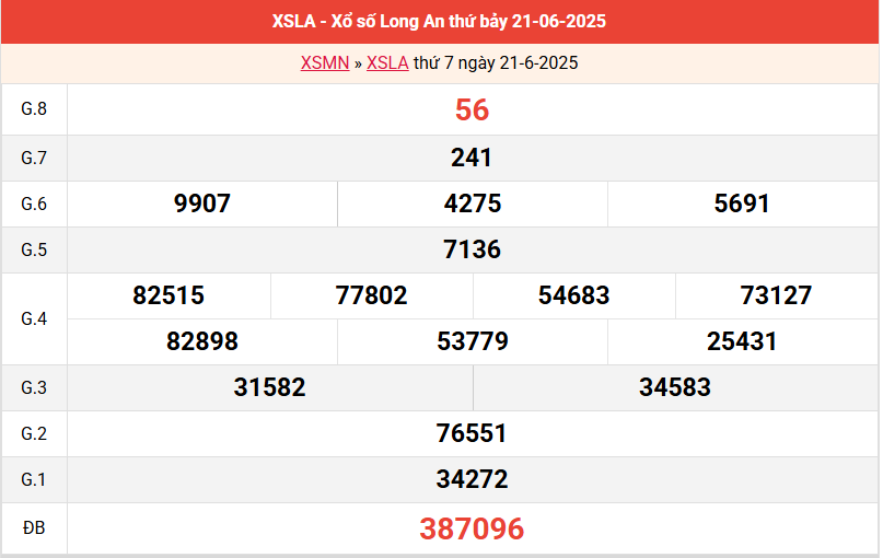 Bảng kết quả Long An 21/6/2025 tuần trước