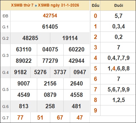 1. ✔️ Xem lại KQXSMB ngày 31/01/2026 hôm qua