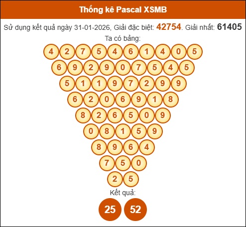 Kết quả công thức Pascale dựa theo KQXSMB ngày 01/02/2026