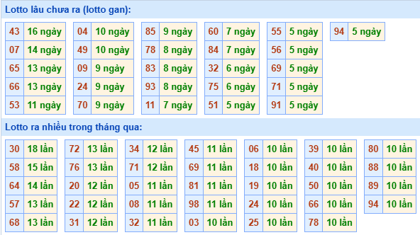 ⇒ Xem bảng tần suất lô tô MB từ 00 đến 99 trong 30 ngày gần nhất tại: