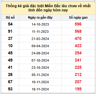 Bảng bạch thủ MB lâu chưa về đến ngày 10/6/2025