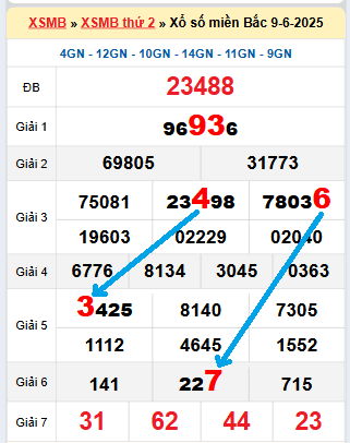 Kết quả xổ số miền Bắc ngày 9/6/2025