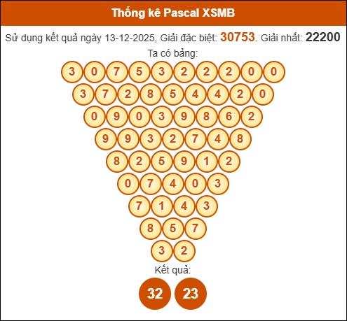 Bình luận xổ số Miền Bắc 14/12 dựa vào tam giác Pascale (được tính theo giải GĐB và giải Nhất ngày hôm trước):