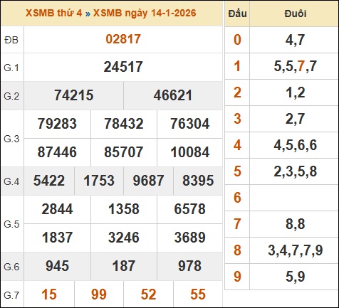 Người chơi nên tham khảo bình luận kết quả xổ số miền Bắc trong kỳ quay trước ngày 14/01/2026, để tìm ra cơ hội nhận định XSMB 15/01/2026 hôm nay nhé!