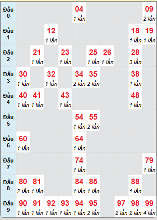 ⇒ Xem bảng tần suất loto miền Bắc từ 00 đến 99 trong tháng chi tiết nhất tại: