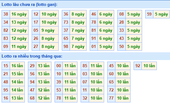 Thống kê tần suất lô tô miền Bắc trong 30 ngày đến 17/7
