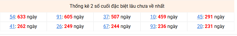 ⚡ Thống kê giải đặc biệt lâu chưa về: 54 - 91 - 37 - 10 - 45