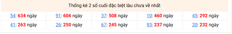 ⚡ Thống kê giải đặc biệt lâu chưa về: 54 - 91 - 37 - 10 - 45