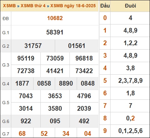 Kết quả xổ số miền Bắc ngày 18/6/2025