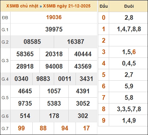 Theo dõi lại kết quả XSMB 21/12/2025 hôm qua