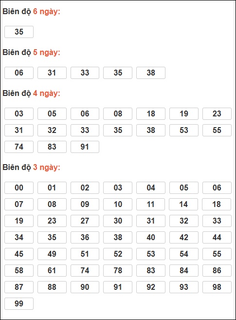 - Kỳ trước có loto 35 ⇒ Thống kê loto hay về: 92