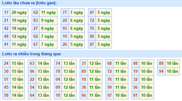 💰 Lô tô gan lâu ra nhất: 17 - 21 - 42 - 48 - 41 - 62 - 83