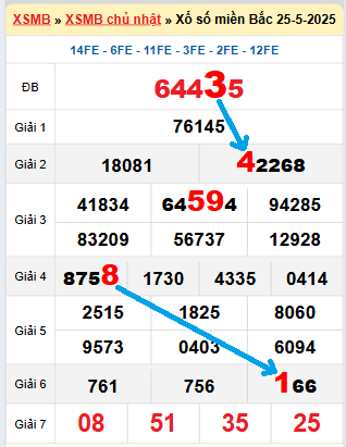 Kết quả xổ số miền Bắc ngày 25/5/2025