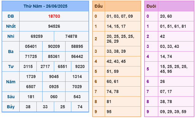- Dựa Trên kết quả XSMB ngày: 26/06/2025