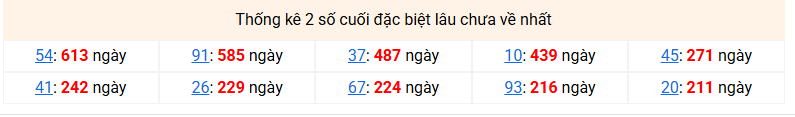 ⚡ Thống kê giải đặc biệt lâu chưa về: 54 - 91 - 37 - 10 - 45
