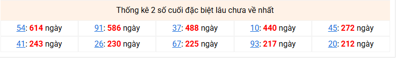 ⚡ Thống kê giải đặc biệt lâu chưa về: 54 - 91 - 37 - 10 - 45