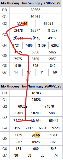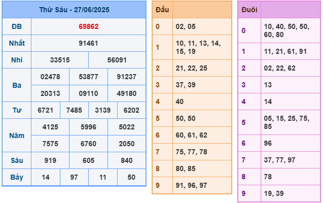 ✅ 2. Tổng hợp kết quả miền Bắc hôm qua ngày 27/6/2025