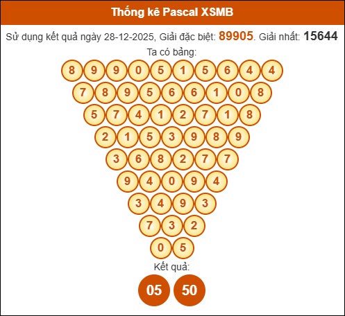Bình luận kết quả XSMB 29/12 dựa vào tam giác Pascale (được tính theo kết quả: giải ĐB và giải Nhất):