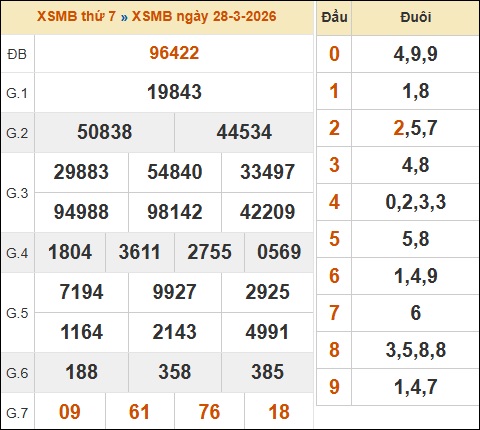 1. ✔️ Xem lại KQXSMB ngày 28/03/2026 hôm qua