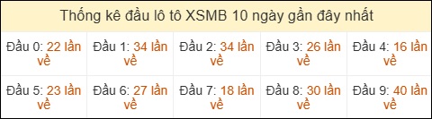 ⚡ Đầu XSMB hôm qua có nhiều nhất: 9