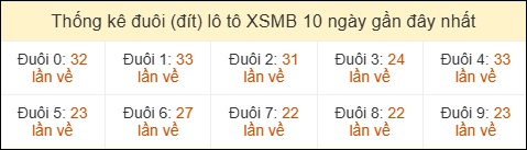 Thống kê tần suất đuôi lô tô Miền Bắc đến ngày 29/03/2026