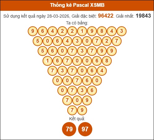 Kết quả công thức Pascale dựa theo KQXSMB ngày 29/03/2026