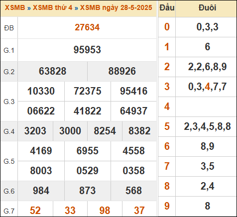 Kết quả xổ số miền Bắc ngày 28/5/2025