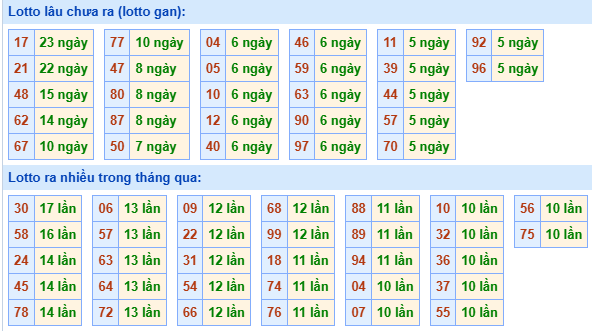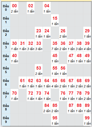 ⇒ Xem bảng tần suất lô tô miền Bắc các cặp số từ 00 đến 99 trong tháng chi tiết nhất tại: