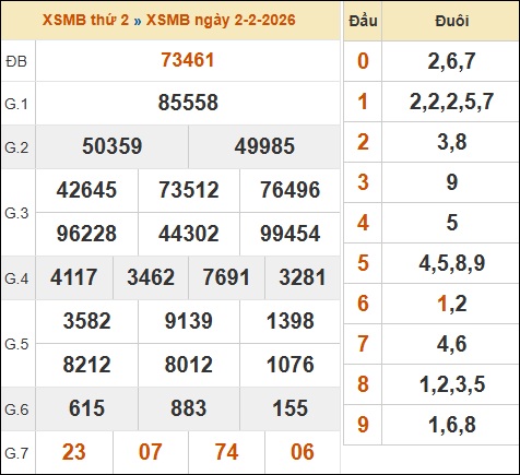 1. ✔️ Xem lại bảng KQXSMB hôm qua 02/02/2026