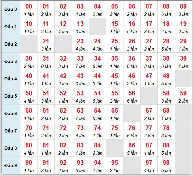 Thống kê tần suất lô tô miền Bắc trong 30 ngày đến 30/6
