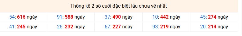 ⚡ Thống kê giải đặc biệt lâu chưa về: 54 - 91 - 37 - 10 - 45