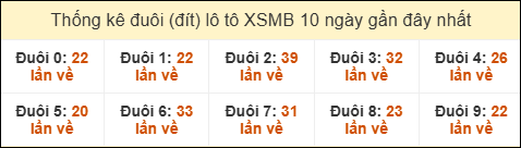 Thống kê tần suất đuôi lô tô Miền Bắc đến ngày 31/08/2025